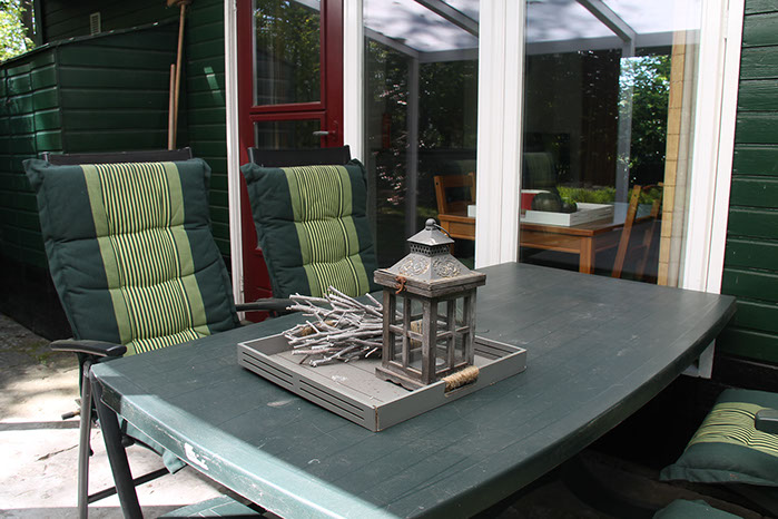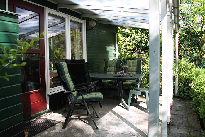 Het huisje biedt met een royale bostuin van ruim 800 m2 veel privacy. U heeft de beschikking over een overdekt terras waar u heerlijk kunt zitten. Het tuinmeubelset bestaat uit vier stoelen met tuinkussens en een tafel. In de tuin staat een picknicktafel.