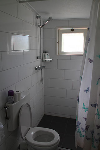De badkamer is recent gerenoveerd en voorzien van inloopdouche, wastafel en toilet. Het benodigde badtextiel ligt voor u klaar in het huisje.