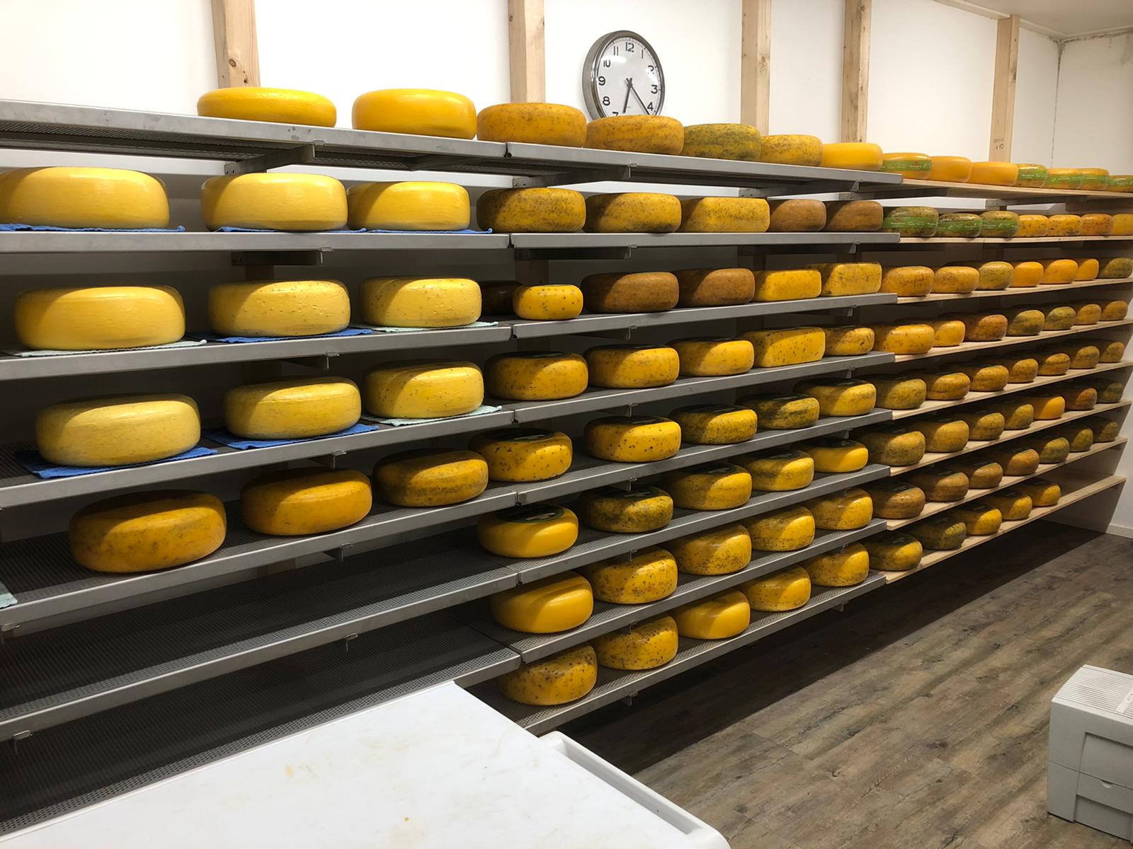 De kazen rijpen minimaal zes weken op de kaasplanken in de kelder van zorgboerderij Schottinkslag.